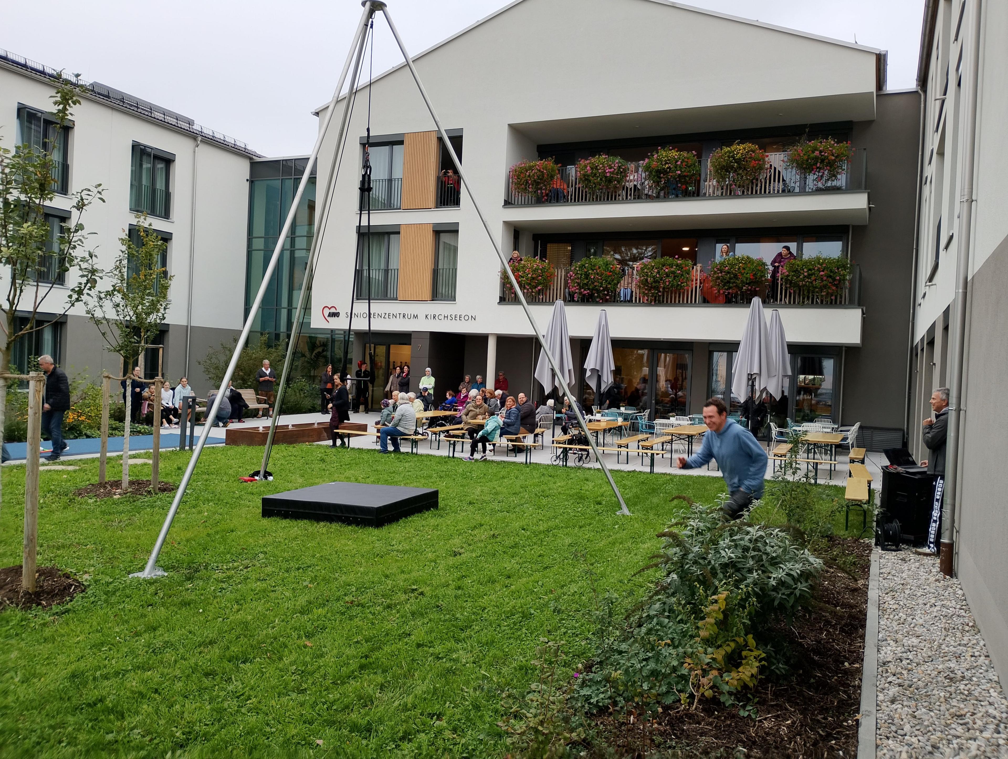 Daraus entstand in mir eine Idee, die sich zu einem festen Bewegungsangebot entwickelt hat. Seit vielen Jahren bin ich nun ehrenamtlich im Seniorenzentrum Kirchseeon tätig und verbringe gemeinsam mit den Senior*Innen den Vormittag schwungvoll auf dem Minitrampolin.